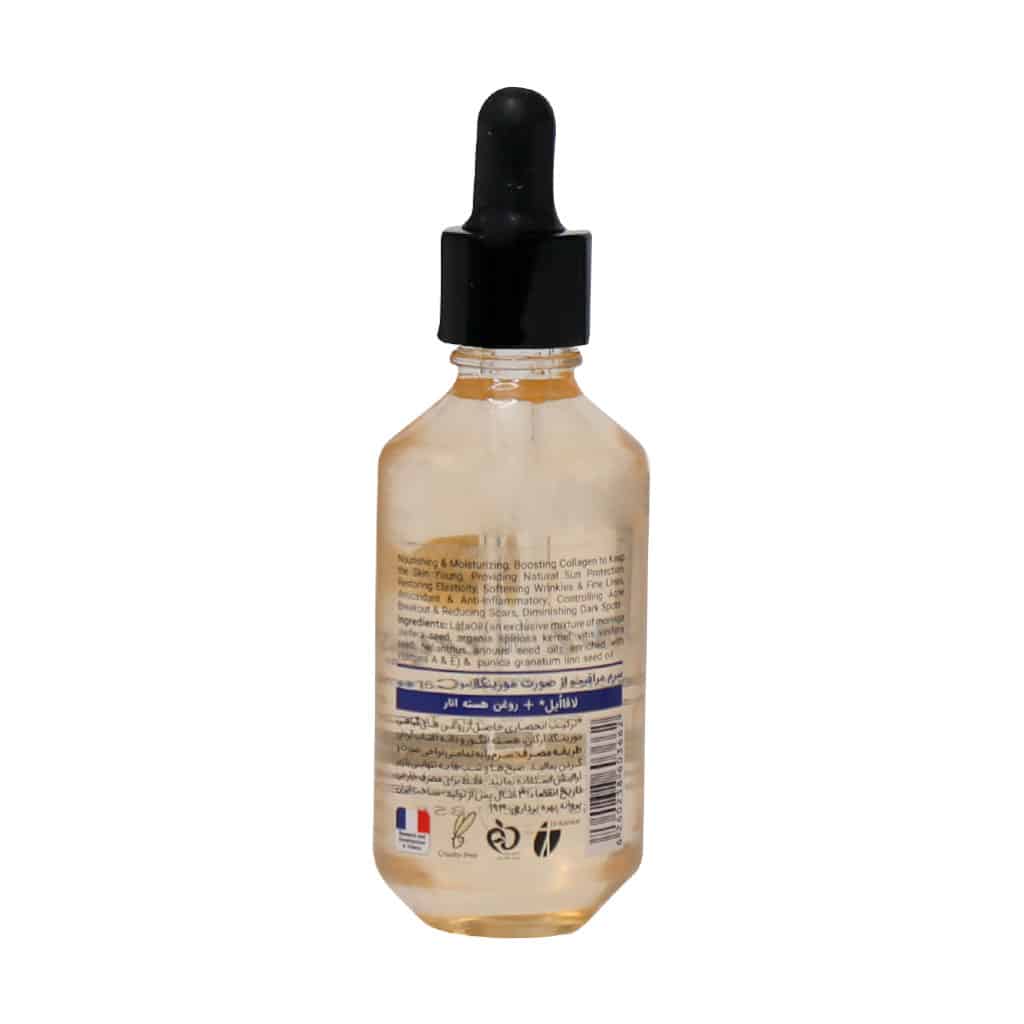 ترکیب انحصاری لافا ایل (شامل روغنهای گیاهی مورینگا، آرگان، هسته انگور و دانه آفتابگردان و ویتامین A و E)، روغن هسته انار