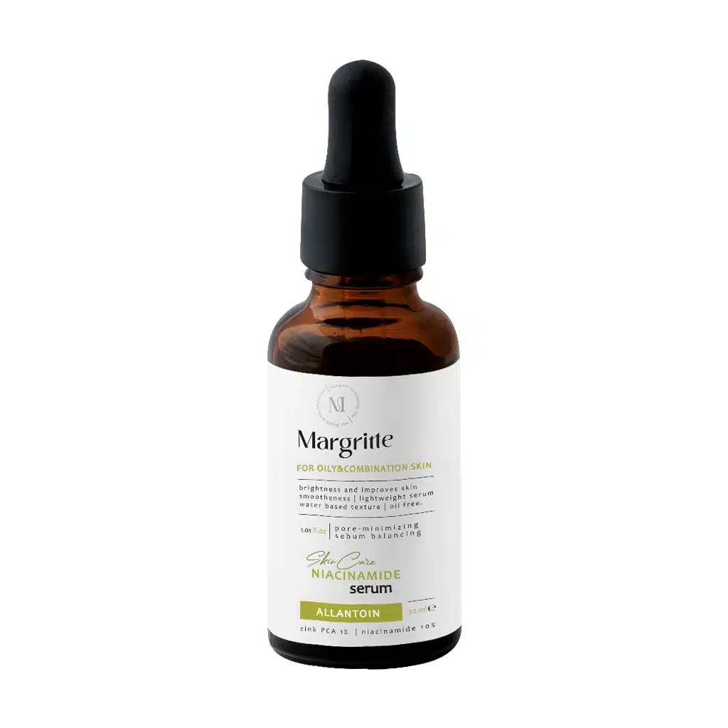 سرم نیاسینامید مارگریت حاوی ترکیبات موثری از جمله نیاسینامید و زینک بوده که یک گزینه مناسب برای افرادی است که پوست چرب و مختلطی دارند و به دنبال یک روش مناسب برای کاهش چربی، کوچک کردن منافذ و بهبود بافت پوست خود هستند. نیاسینامید موجود در این محصول به بهبود ظاهر پوست، کاهش قرمزی، کاهش منافذ باز و تنظیم تولید چربی کمک کرده و زینک نیز چربی اضافی پوست را کاهش می‌دهد. یکی از ترکبیات موثر موجود در این سرم، آلانتوئین بوده که باعث تسکین و ترمیم پوست شده و نرمی و لطافت را برای پوست شما به ارمغان می‌آورد.