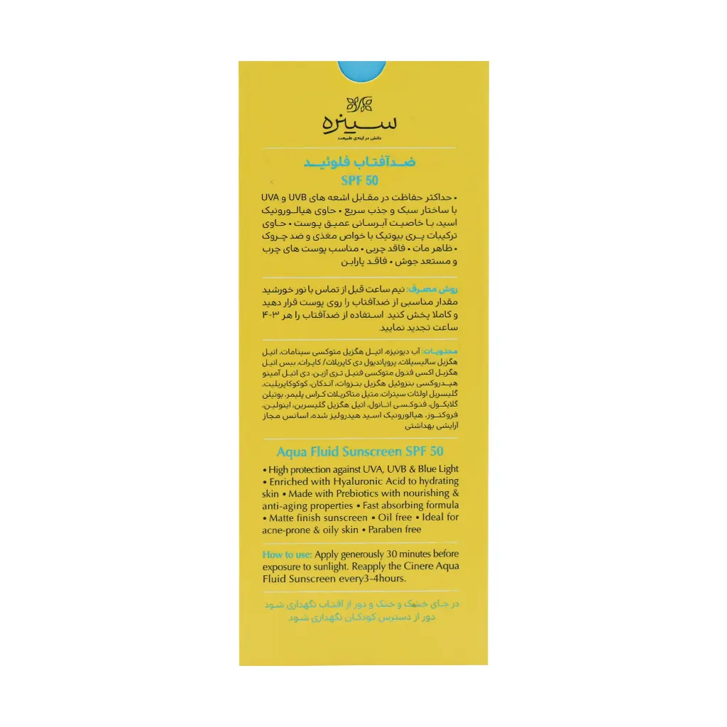 ضد آفتاب آکوا فلوئید پوست چرب SPF50 سینره