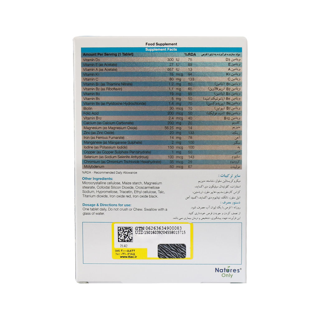 با شکم خالی مولتی ویتامین بایوبیسیکس آقایان نیچر اونلی مصرف نکنید.