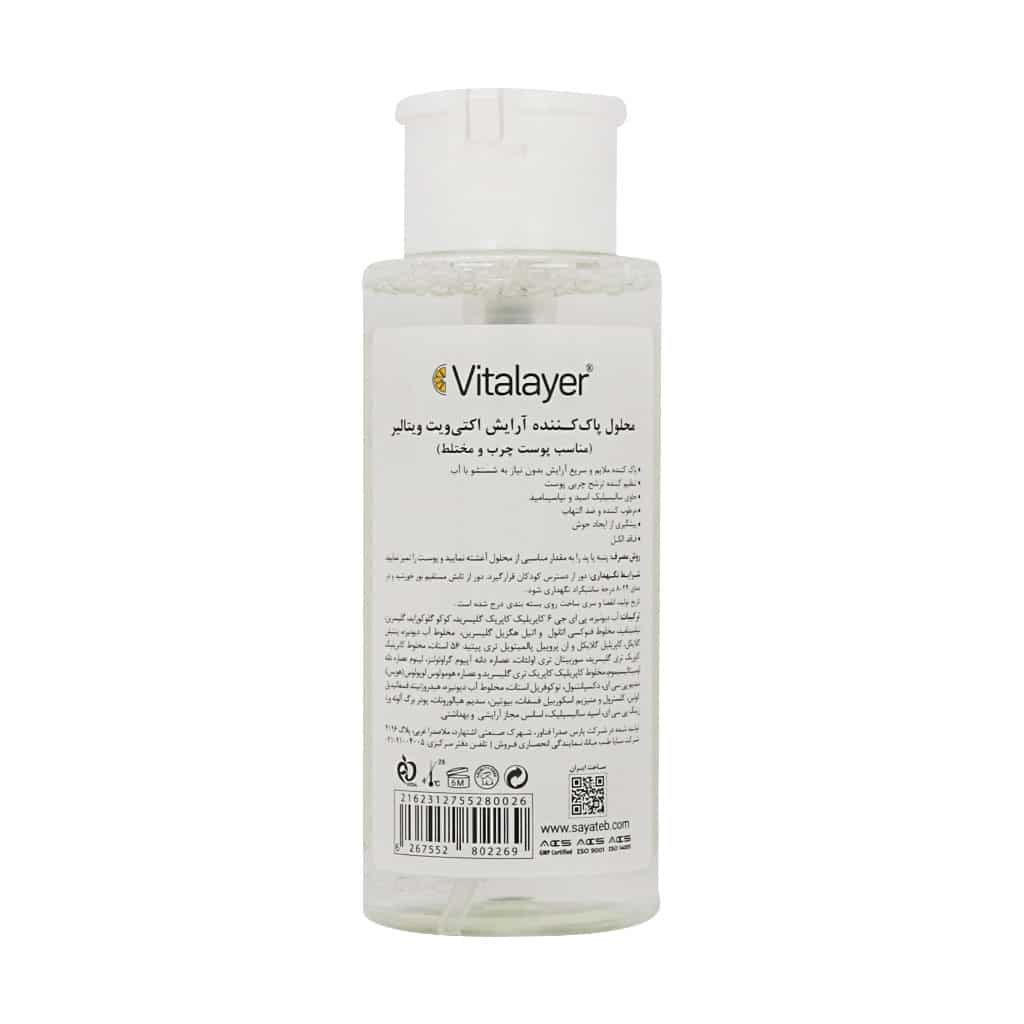 محلول پاک کننده آرایش اکتی ویت ویتالیر مناسب پوست چرب و مختلط بدون نیاز به شستشو با آب و در کمترین زمان به پاک کردن آرایش و آلودگی از روی پوست می‌پردازد و بعد از استفاده پوستی لطیف و نرم را برای شما به ارمغان می‌آورد.