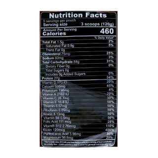 هر ۳ اسکوپ (۱۲۰ گرم) از این مکمل حاوی ۴۶۰کالری، ۲۷ گرم پروتئین، ۸۴ گرم کربوهیدرات و ۱.۵ گرم چربی است که نسبت ایده‌آلی از درشت‌مغذی‌ها را برای بهبود عملکرد بدن فراهم می‌نماید.