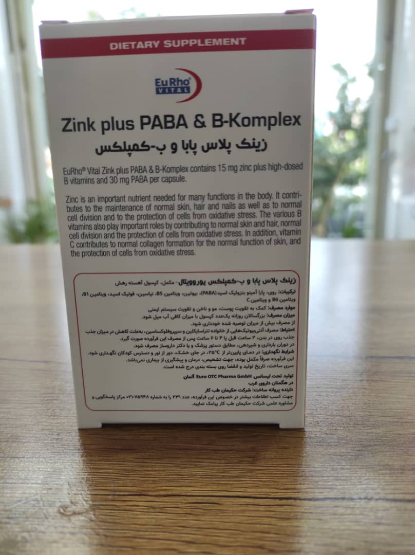کپسول زینک پلاس پابا و ب کمپلکس یوروویتال تحت لیسانس کشور آلمان با دارا بودن ترکیباتی مانند زینک، ویتامین C، ویتامین B به حفظ سلامت پوست، مو و ناخن کمک موثری میکند و مانع از ریزش موها میشود. در ترکیبات این قرص پابا (پارا آمینو بنزوئیک اسید) دیده میشود که موجب درمان برخی از بیماریهای پوستی شده و از سفیدی موها جلوگیری مینماید. همچنین با دارا بودن زینک به تقویت سیستم ایمنی بدن و افزایش مقاومت بدن در مقابل بیماریها کمک میکند. ساختار این کپسول به صورت آهسته رهش است و ترکیبات موجود در آن به آهستگی آزاد میشوند و جذب بالاتری دارد. برای خرید زینک پلاس میتوانید به سایت داروخانه آنلاین مثبت سبز مراجعه نمایید.