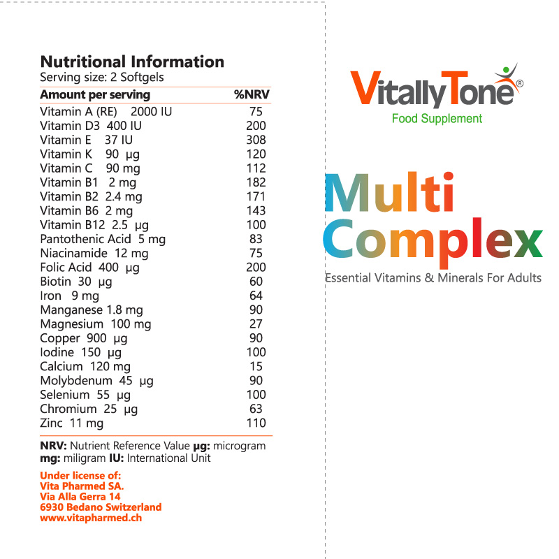 کپسول مولتی کمپلکس ویتالی تون کمک می‌کند تا نیاز بدن شما به انواع ویتامین‌ها و مواد معدنی تامین شود. از آنجایی که معمولا بسیاری از ما میوه، سبزیجات و پروتئین‌ها را در رژیم غذایی خود به طور کامل دریافت نمی‌کنیم، بهتر است تا از مولتی ویتامین‌ها کمک بگیریم تا بدین وسیله کمبود ویتامین در بدن جبران شود. این محصول برای بزرگسالان در نظر گرفته شده و به بهبود سیستم ایمنی بدن کمک می‌کند. مقدار دوز توصیه شده برای این سافت ژل ۲ بار در روز است. با مصرف این کپسول به حفظ سلامت استخوان‌ها و دندان‌های خود کمک کرده‌اید. حفظ سلامت پوست، مو و ناخن از دیگر مزایای استفاده از کپسول مولتی کمپلکس ویتالیتون است. در ادامه به توضیح در مورد برخی از ترکیبات موجود در این محصول خواهیم پرداخت.